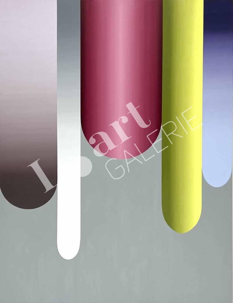 Feine Farbverläufe und präzise gesetzte Linien werden von der Künstlerin am Computer vorbereitet und dann in akribischer Kleinarbeit analog umgesetzt, so dass der Duktus des Pinselstrichs kaum mehr sichtbar ist. Gabi Mitterer spielt gekonnt mit optischen Wahrnehmungen, mit Farbkontrasten, Verläufen und Linien, die in ihren Werken zu geometrisch konstruktiven Kompositionen und amorphen Formen werden.